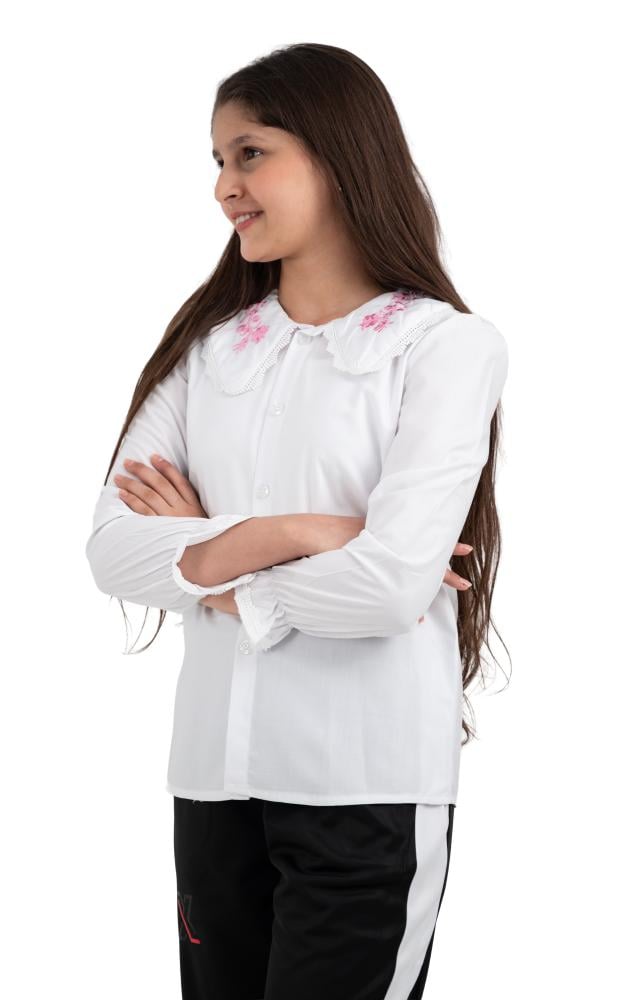بلوزة سمايل – ابتدائي | لمسة ناعمة وأناقة مدرسيةبلوزة مدرسية مريحة ومصمّمة بعناية لطالبات المرحلة الابتدائية، تجمع بين النعومة والتفاصيل الجذابة، بخامة متينة من 80% بوليستر و20% قطن.